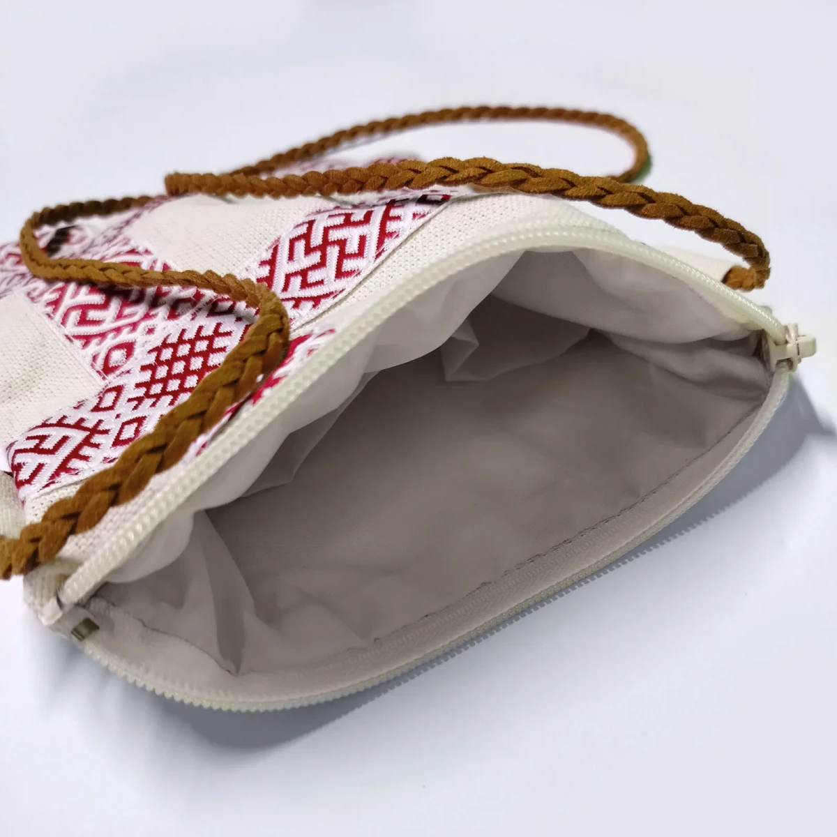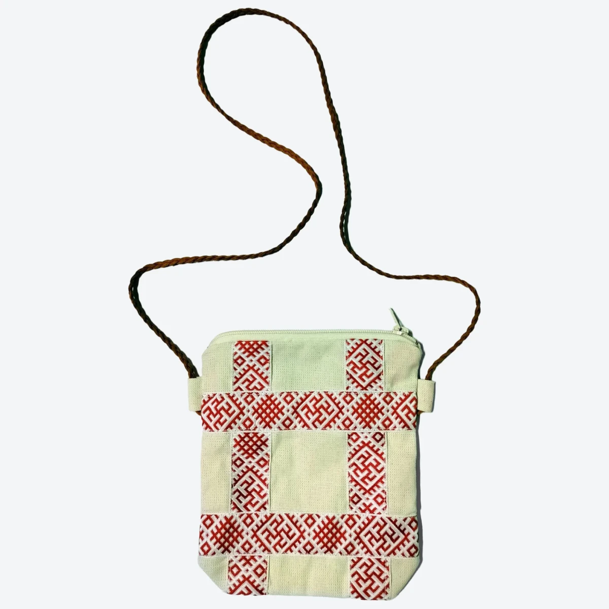 Сумка-кошель бежевая с тесьмой в русском стиле