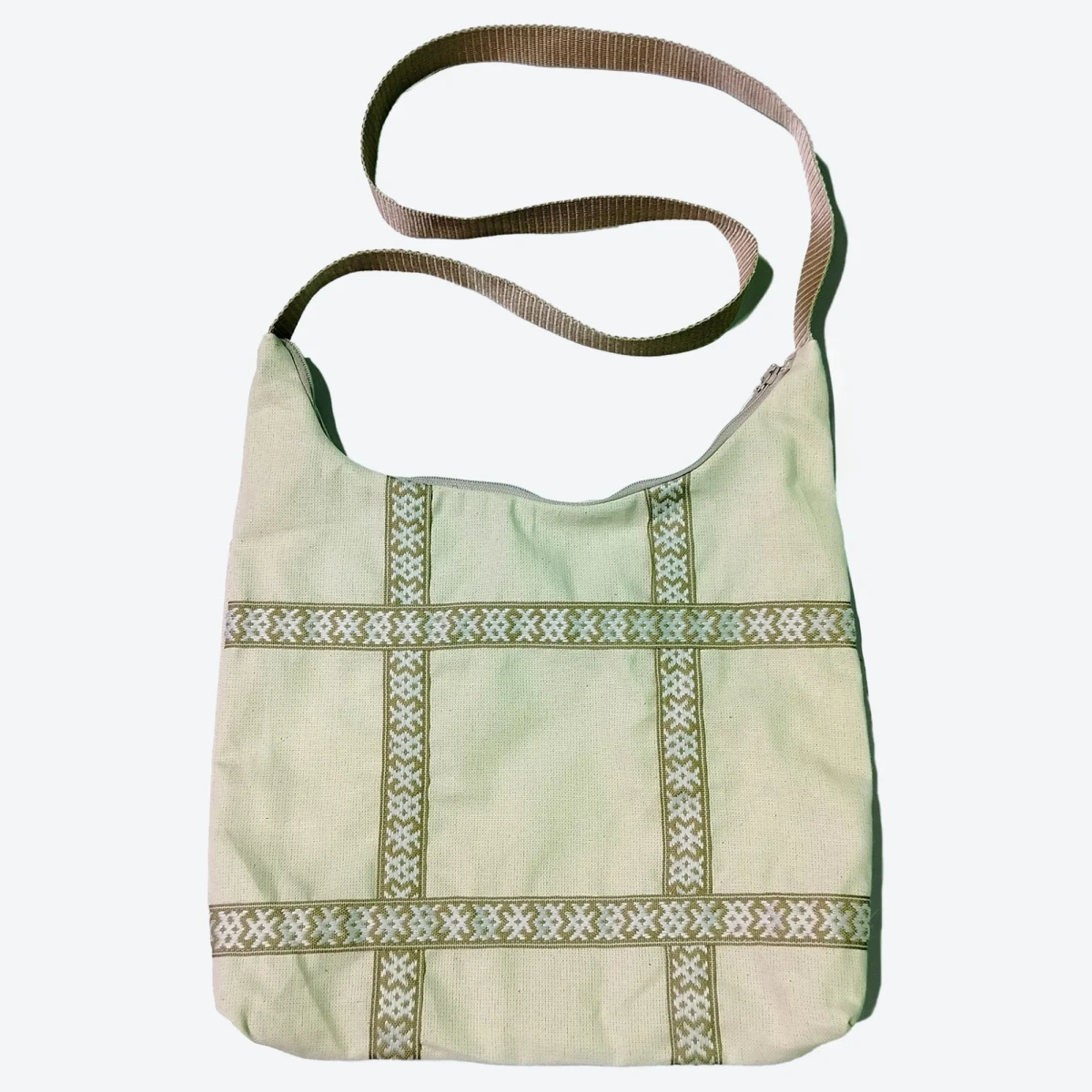 Сумка-хобо бежевая с тесьмой в русском стиле