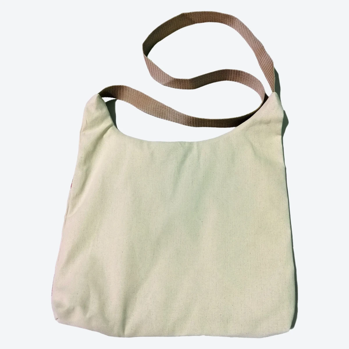 Сумка-хобо бежевая изготовлена из двунитки, материала повышенной плотности из 100% хлопка. Детали сумки-хобо: одно отделение, внутренний карман, прочная длинная ручка, стилизованная тесьма в русском стиле. Размеры сумки-хобо : в30*ш35*г4 см, длина ручки 52 см, ширина 3 см.