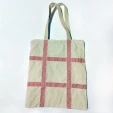 Сумка-шоппер бежевая с тесьмой в русском стиле на молнии