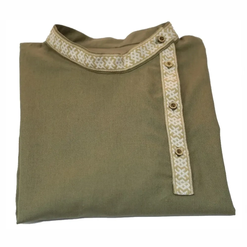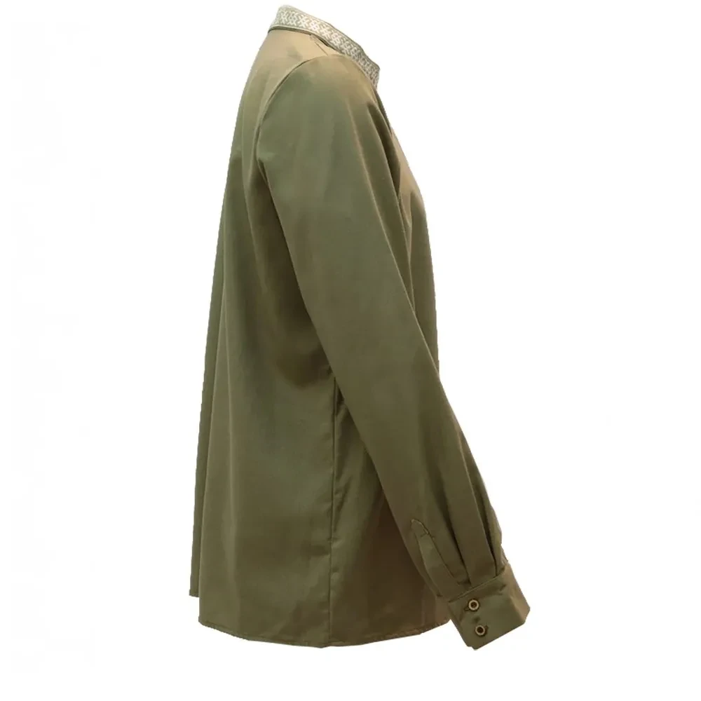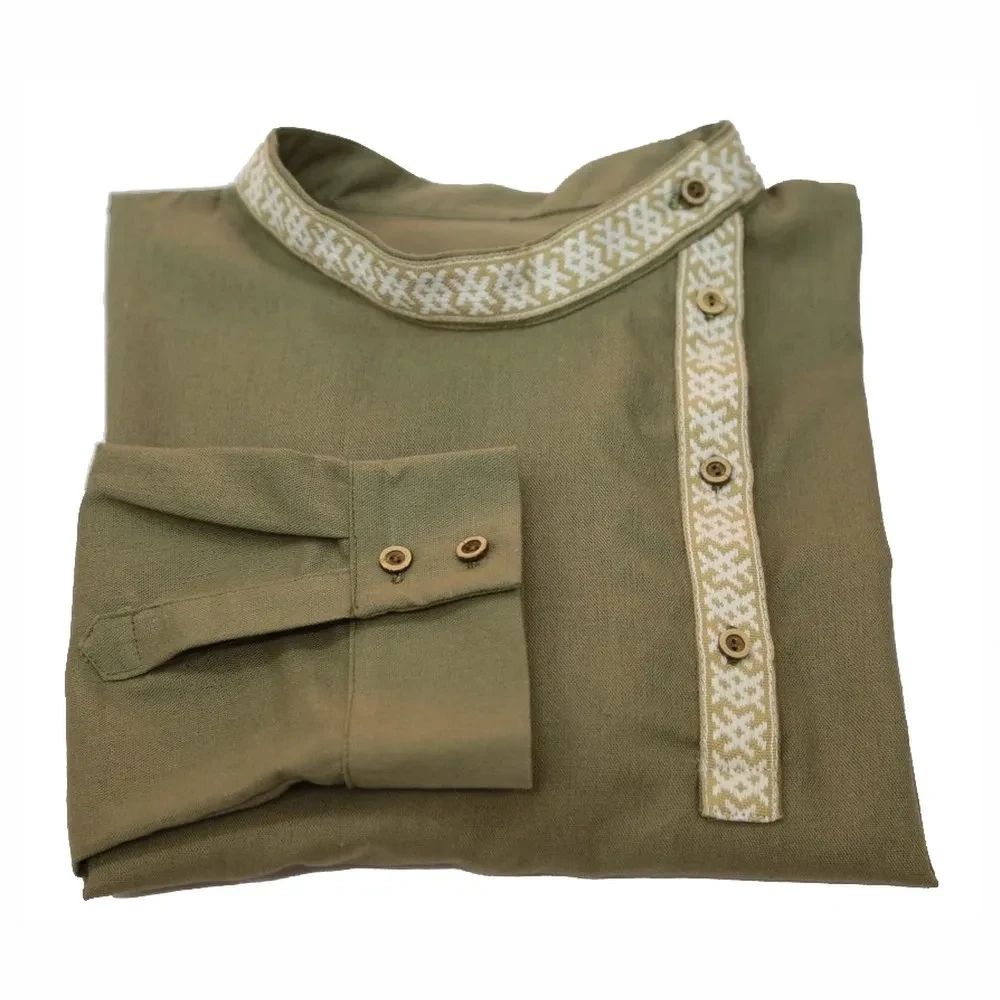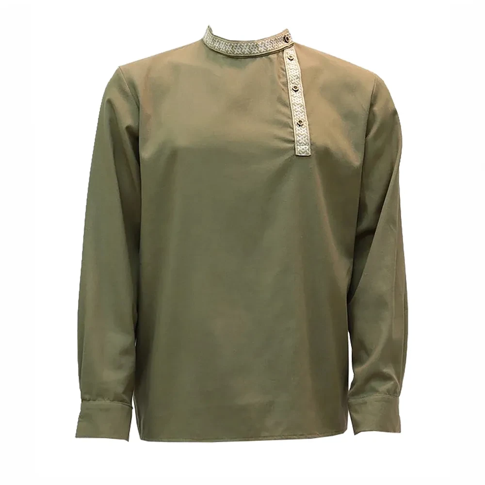 Мнение о том, что все рубашки у мужчин однотипны и похожи друг на друга, — опрометчивое. Косоворотка «Благодать» без сомнения выделит Вас из толпы! Косоворотка «Благодать» выполнена в современном коричневато-зеленом оттенке из качественной ткани: 40% п/э, 27% вискоза, 23% лен, 10% хлопок. Данная модель вызовет не только приятные ассоциации, но и будет соответствовать законам современной моды.