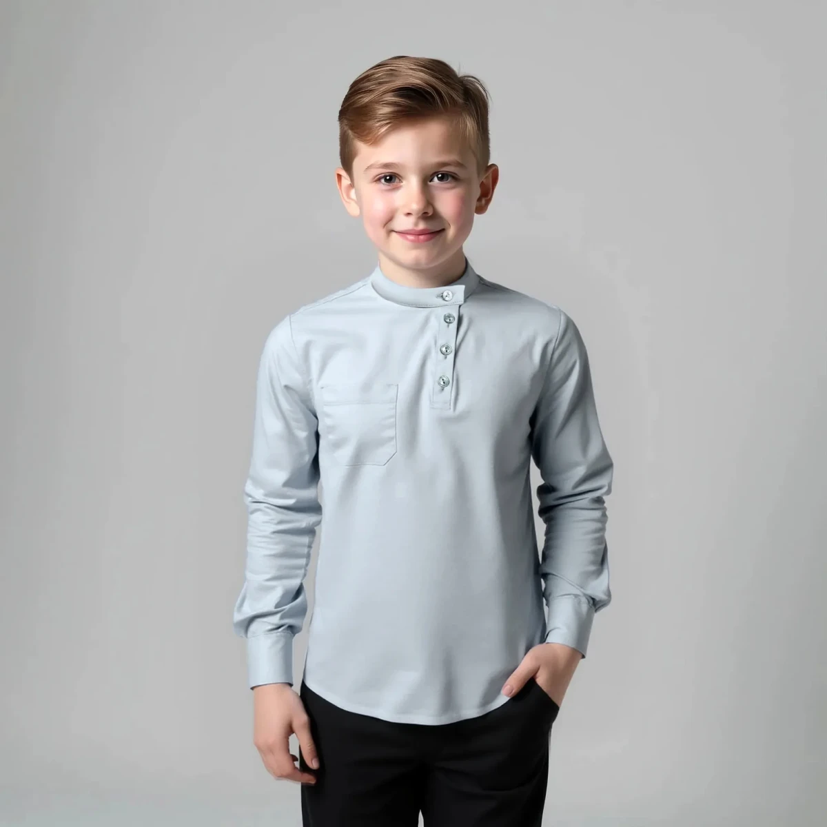 Косоворотка детская «Жемчужная со светло-серыми пуговицами»