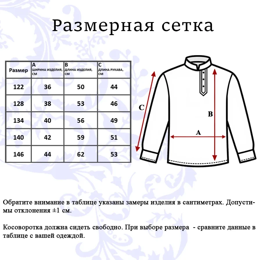 Рубашка - Косоворотка для мальчика с длинным рукавом имеет прямой, свободный крой и классический косой воротник-стойку на 4 пуговицы, на груди декорирована карманом. Данная косоворотка вызовет не только благоприятные ассоциации, но и будет соответствовать тенденциям современной моды и нашим народным традициям.