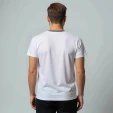Она станет отличной универсальной вещью на каждый день и на любой сезон, а также будет замечательным подарком друзьям, коллегам и родным. Футболка - косоворотка представлена в белом цвете с принтом-картиной. Имитация планки декорирована пуговицами. Размерный ряд от S до XXL.