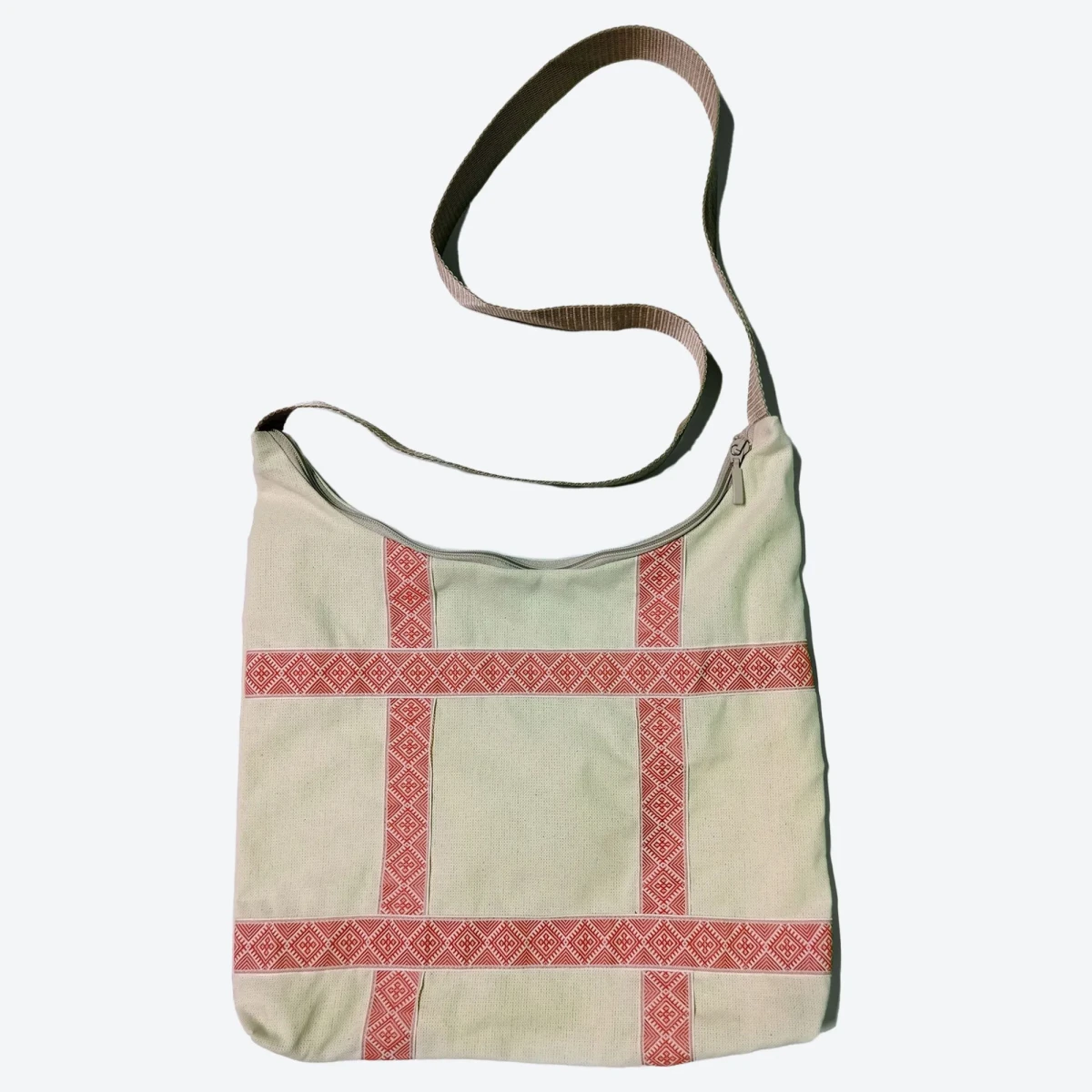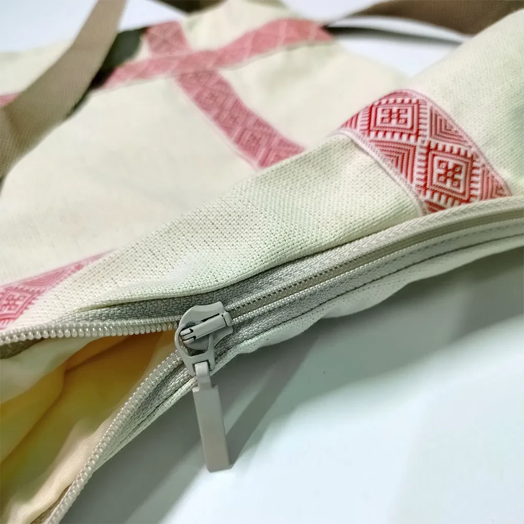 Сумка-хобо бежевая с тесьмой «Восход» в русском стиле