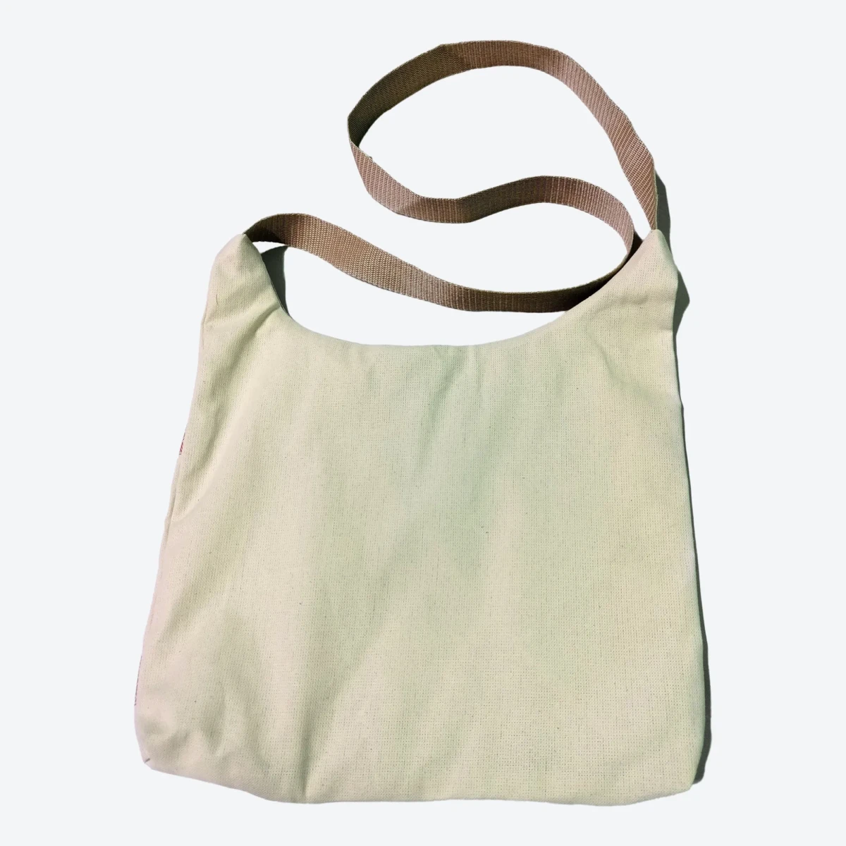 Сумка-хобо бежевая изготовлена из двунитки, материала повышенной плотности из 100% хлопка. Детали сумки-хобо: одно отделение, внутренний карман, прочная длинная ручка, стилизованная тесьма «Восход» в русском стиле.