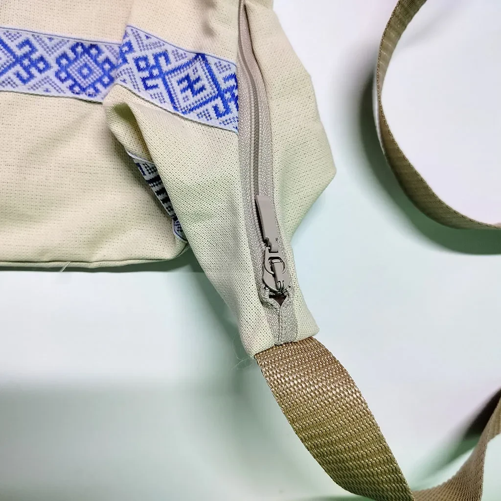 Сумка-хобо бежевая с тесьмой «Морозный цветок» в русском стиле