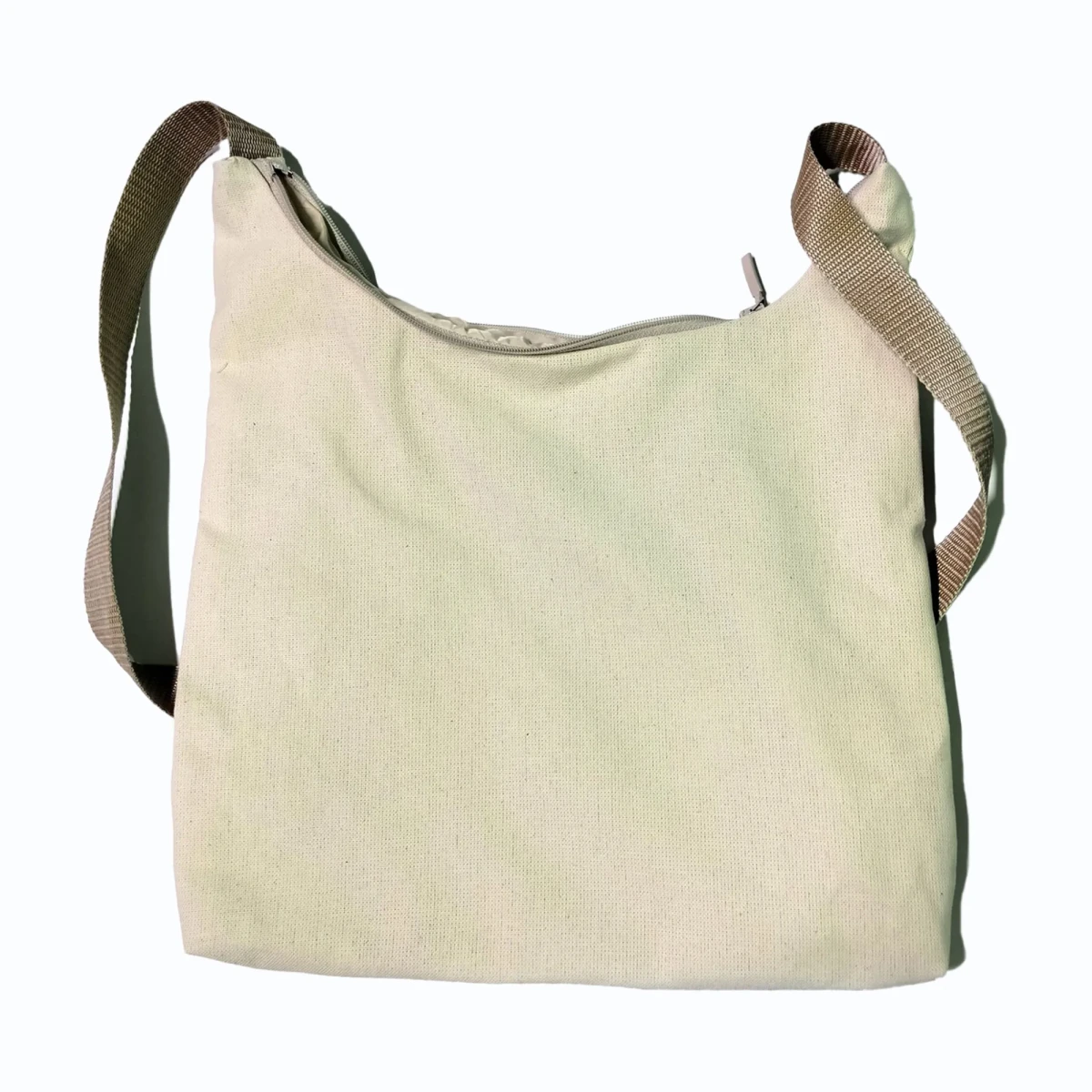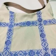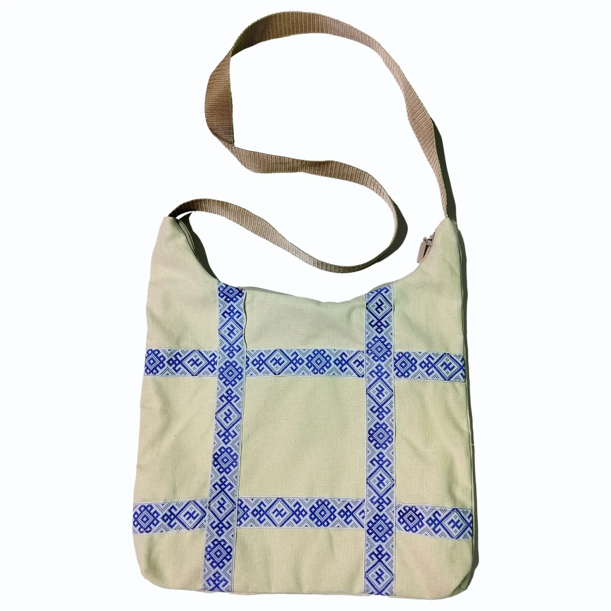Сумка-хобо бежевая изготовлена из двунитки, материала повышенной плотности из 100% хлопка. Детали сумки-хобо: одно отделение, внутренний карман, прочная длинная ручка, стилизованная тесьма «Морозный цветок» в русском стиле.