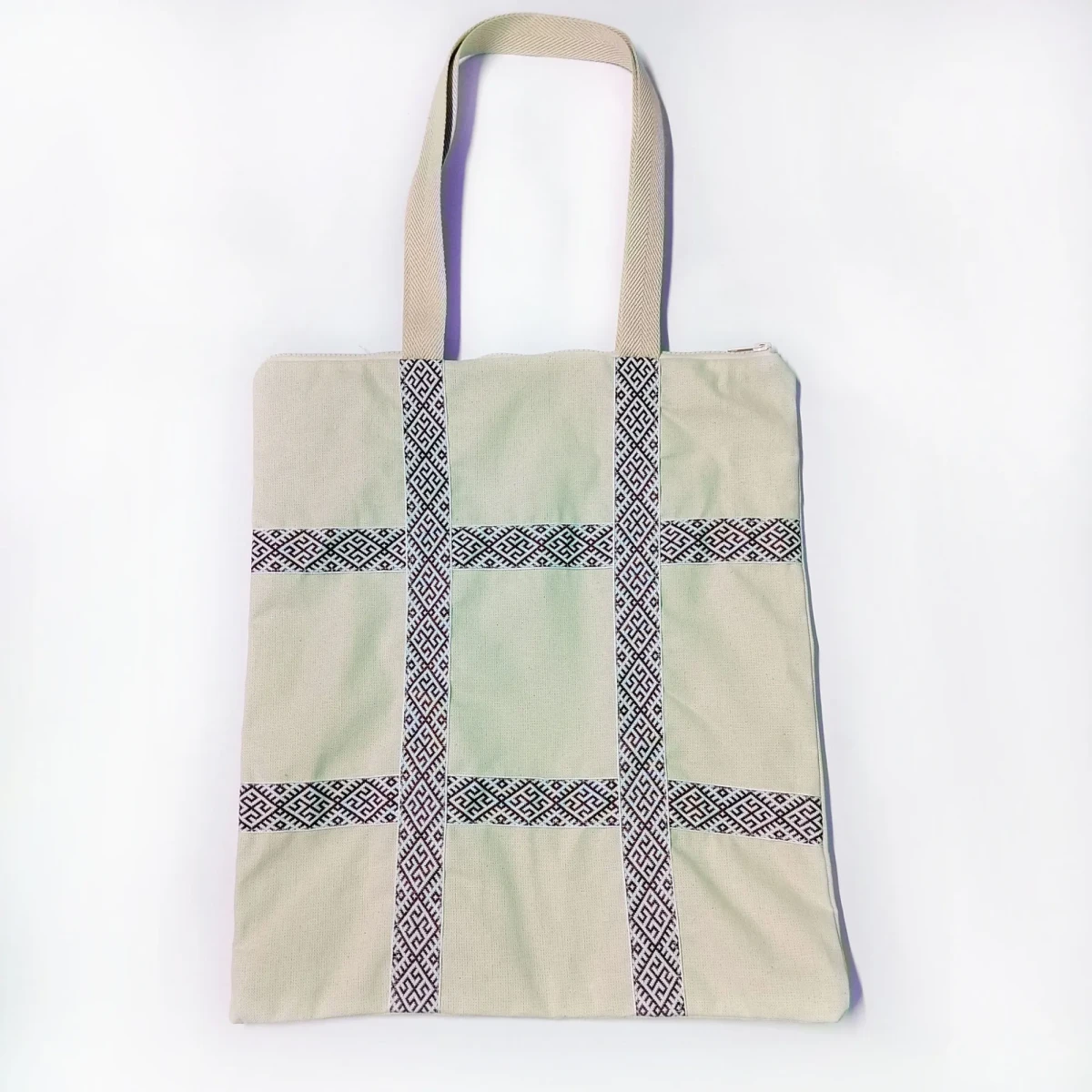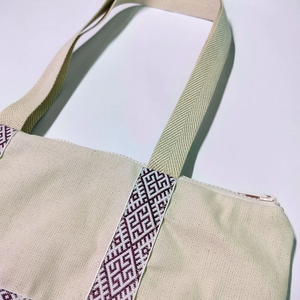 Сумка-шоппер бежевая с тесьмой «Коловрат» в русском стиле на молнии