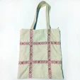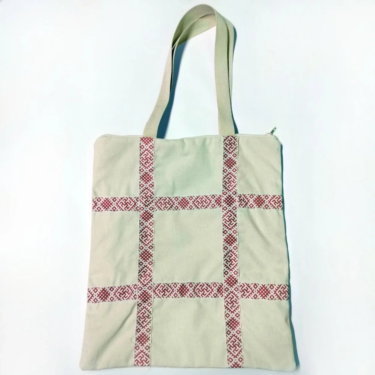 Сумка-шоппер бежевая с тесьмой «Паутинка» в русском стиле на молнии