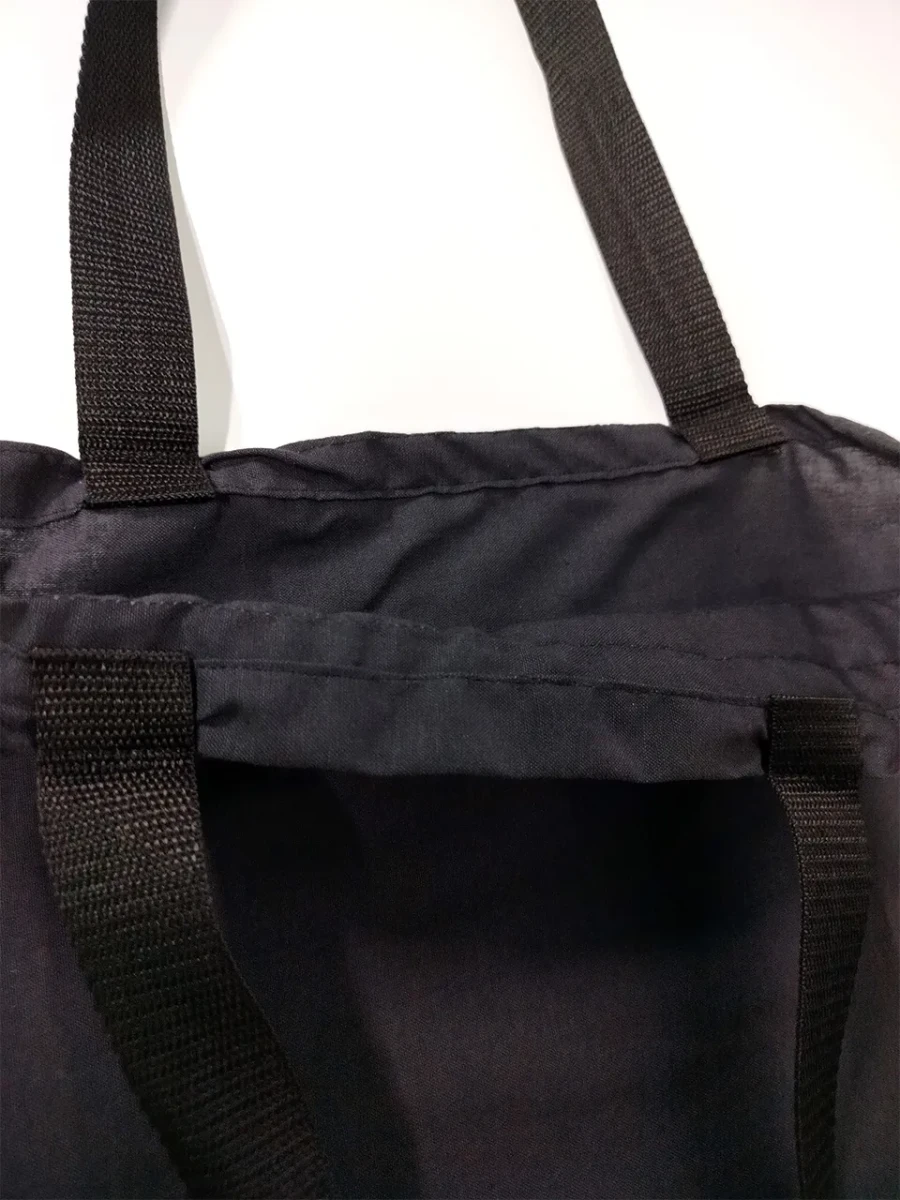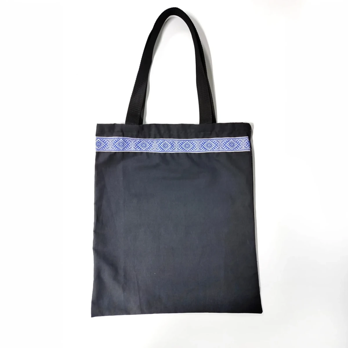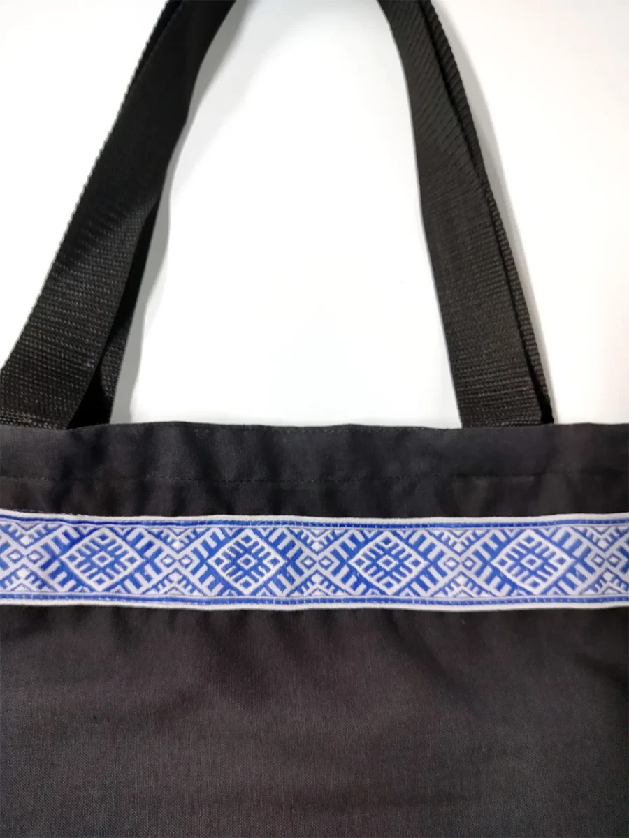 Сумка-шоппер черная с тесьмой «Коловрат - оберег» в русском стиле на молнии