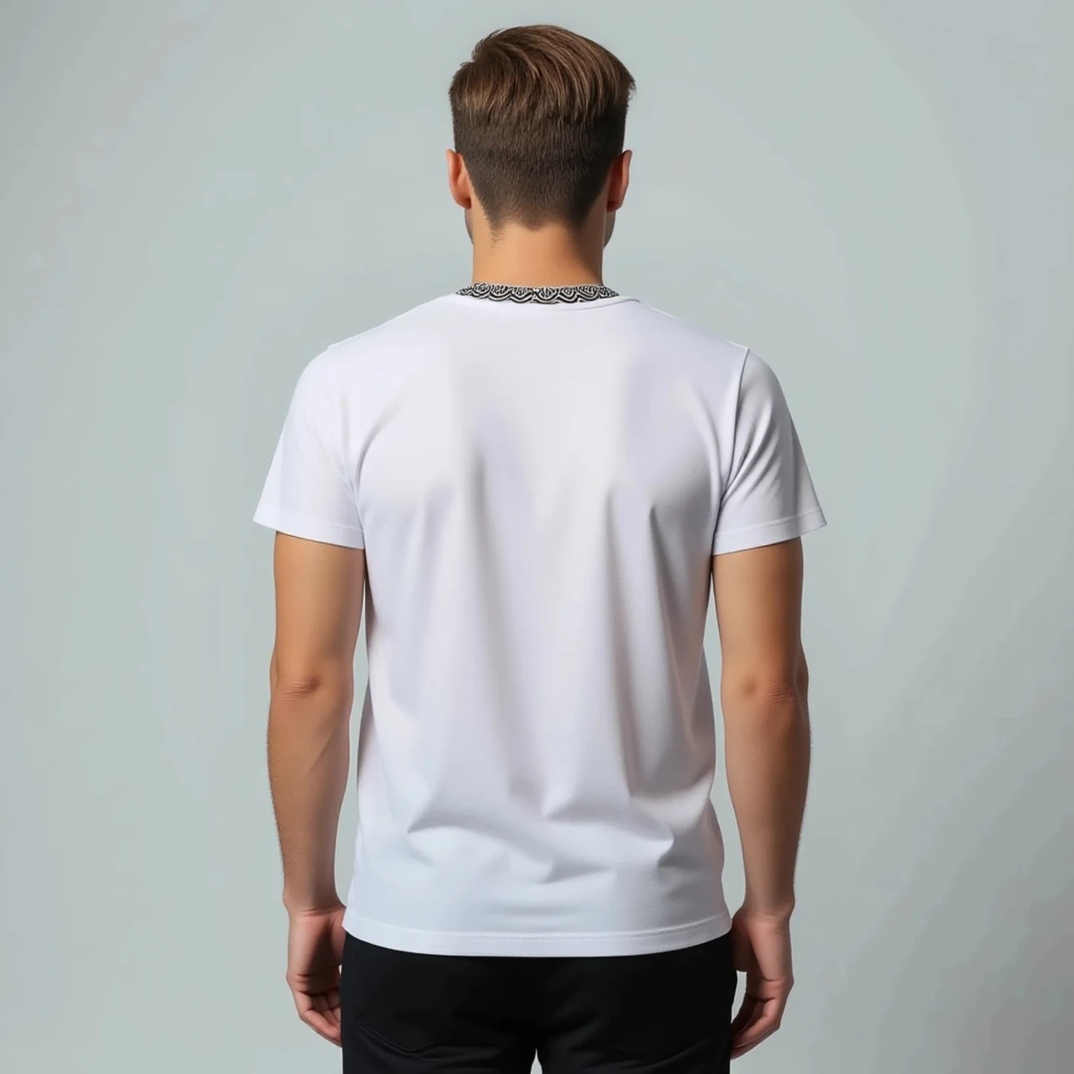 Футболка выполнена по авторской инновационной методике нанесения принта и имитации планки. Мужская футболка-косоворотка прямого кроя произведена из плотного и мягкого хлопкового полотна высшего сорта (92% хлопок, 8 % лайкра, плотность 210 гр./м²).