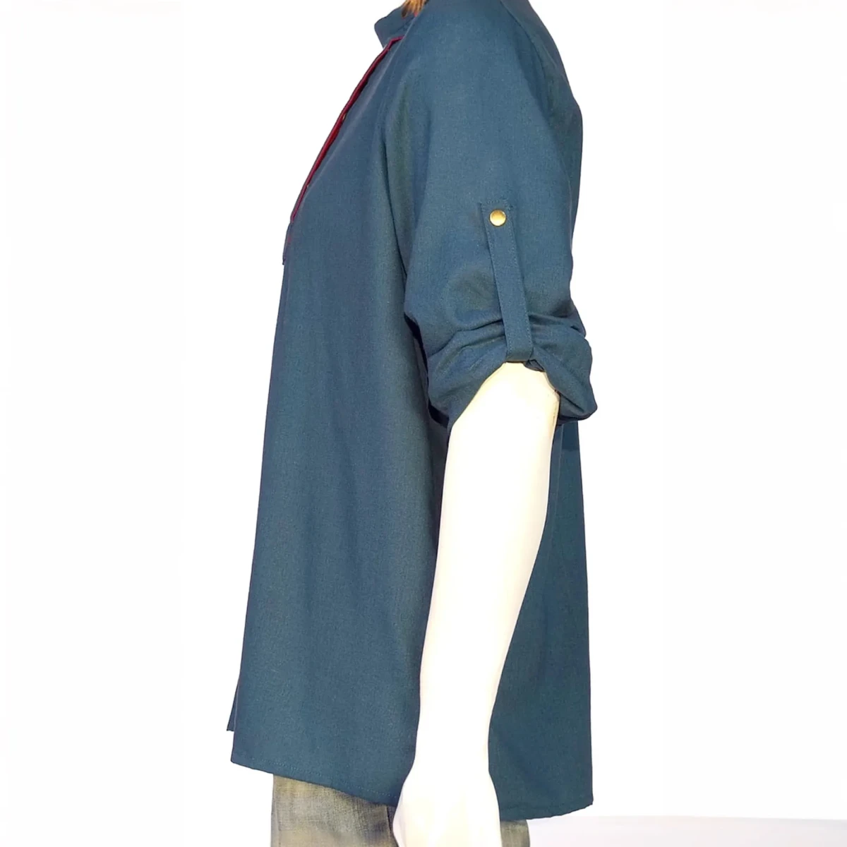 Мужчина в правильно подобранной рубашке всегда выглядит респектабельно. Косоворотка «Морской бриз» на кнопках станет палочкой-выручалочкой в составлении комфортного, но представительного образа. Косоворотка «Морской бриз» выполнена в современном сине-зеленом оттенке с отделкой бордовым цветом по вороту и рукавам. Модель пошита из качественной ткани: 40% п/э, 27% вискоза, 23% лен, 10% хлопок. Данная косоворотка вызовет не только благоприятные ассоциации, но и будет соответствовать тенденциям современной моды.