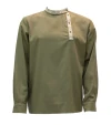 Косоворотка мужская с длинным рукавом имеет прямой, свободный крой и классический косой воротник-стойку на 4 пуговицы. А также мужская рубаха косоворотка по планке и стойке украшена стилизованной тесьмой в контрастной бежевой расцветке, которая помогает выглядеть оригинально и празднично.